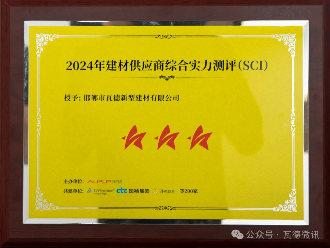瓦德新材在本次SCI综合测评中获评“三星供应商”。本次SCI测评共有2600余家参评单位,其中仅197家供应商获得“三星供应商”称号,占比率仅为7.5%。